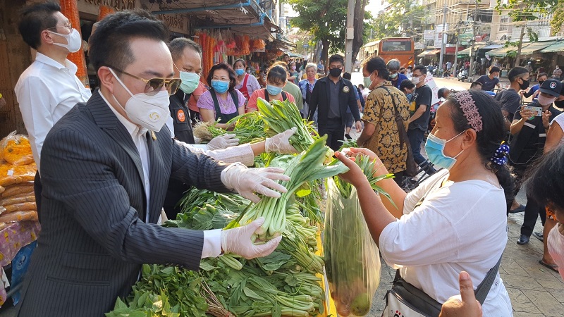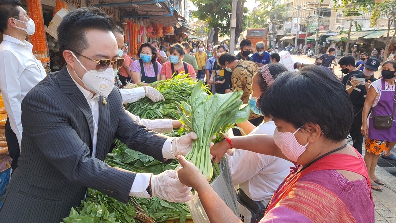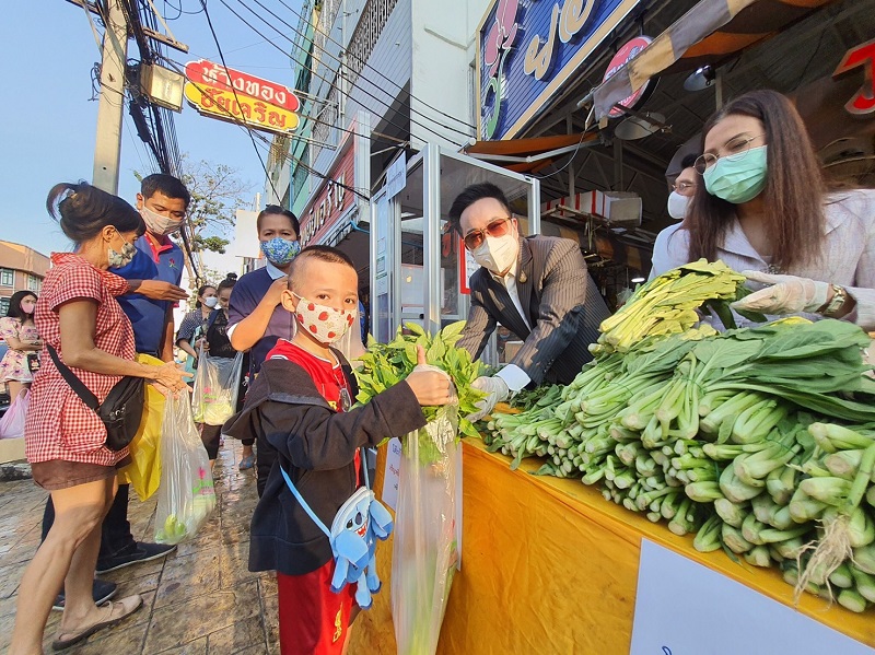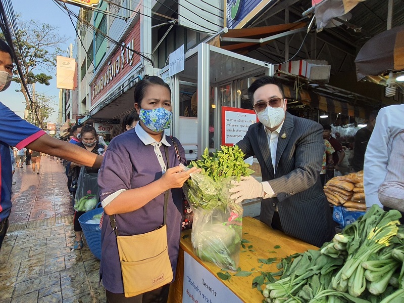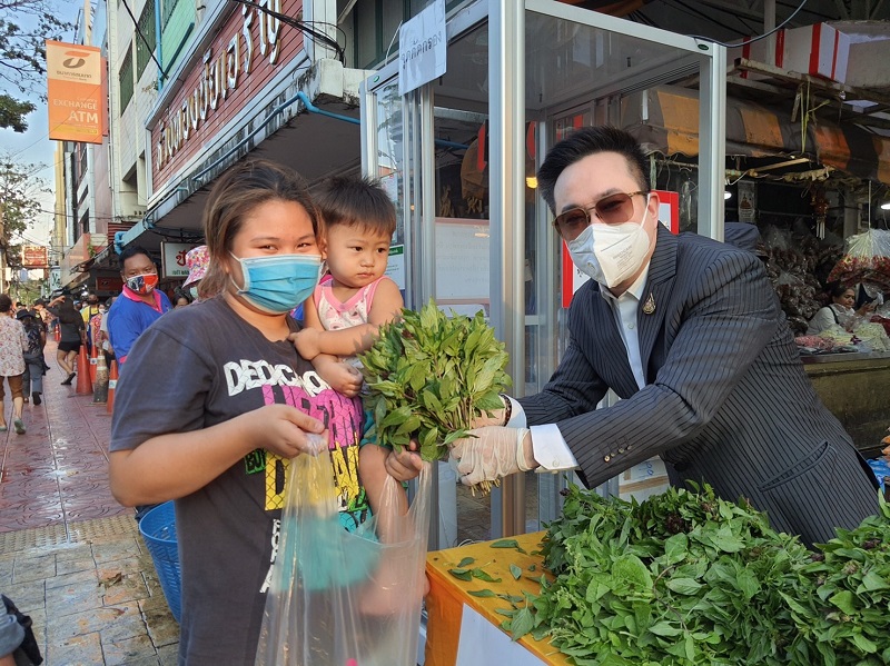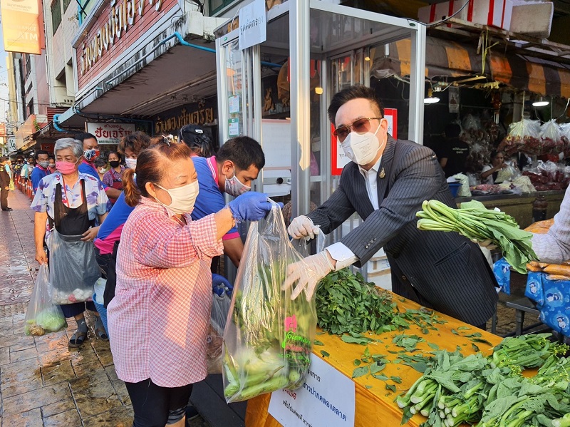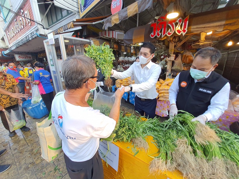 ด้วยความร่วมมือกับองค์การตลาดและกลุ่มผู้ประกอบการในพื้นที่ร่วมกันจัดเตรียม พืชสวนครัว ผักปลอดสารพิษ แจกให้แก่พี่น้องประชาชนย่านปากคลองตลาด จำนวน 500 ชุด เพื่อให้ได้เข้าถึงพืชผักคุณภาพปลอดภัย ช่วยลดค่าครองชีพและบรรเทาความเดือดร้อน หลังได้รับผลกระทบจากสถานการณ์การแพร่ระบาดของเชื้อโควิด-19 ณ บริเวณด้านหน้าตลาดยอดพิมาน