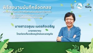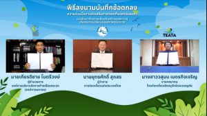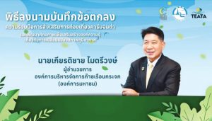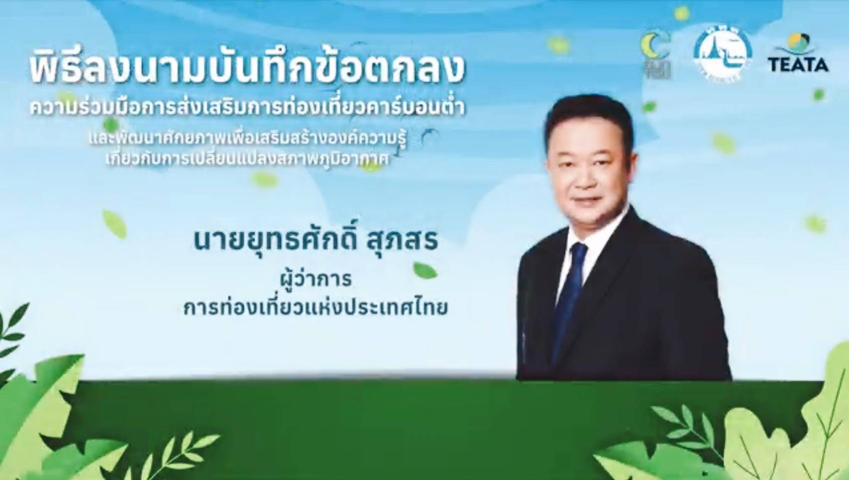 นายยุทธศักดิ์ สุภสร ผู้ว่าการ ททท. กล่าวว่า ททท. ได้ดำเนินการส่งเสริมการท่องเที่ยวตามแผน BCG Model ใช้ทรัพยากรการท่องเที่ยวอย่างคุ้มค่าเพื่อให้เกิดประโยชน์สูงสุด ซึ่งมีแนวคิด Green Tourism การท่องเที่ยวสีเขียว 7 ประการ “7 Greens ท่องเที่ยวสดใส ใส่ใจสิ่งแวดล้อม” สอดคล้องกับปฏิญญารักษาสิ่งแวดล้อมเพื่อการท่องเที่ยวยั่งยืน ด้วยรูปแบบการเดินทางท่องเที่ยวที่ปลอดภัยต่อสุขภาพและบริการที่มีคุณภาพ รวมถึงเพิ่มขีดความสามารถและประสิทธิภาพสินค้าและบริการด้วยการนำความรู้ เทคโนโลยีและนวัตกรรม พัฒนาต่อยอดเพื่อสร้างรายได้บนพื้นฐานของการรักษาสมดุลระหว่างเศรษฐกิจ สังคม และสิ่งแวดล้อม พร้อมผลักดันการท่องเที่ยวสู่ความยั่งยืนตามเป้าหมายการพัฒนาที่ยั่งยืน (SDGs) ขององค์การสหประชาชาติ จึงนับเป็นโอกาสที่ดีในการทำบันทึกข้อตกลงลงความร่วมมือกับ อบก. และ สทอ. เพื่อพัฒนาศักยภาพเสริมสร้างองค์ความรู้เกี่ยวกับการเปลี่ยนแปลงสภาพภูมิอากาศ และส่งเสริมการท่องเที่ยวคาร์บอนต่ำ (Low Carbon) อย่างเป็นรูปธรรม