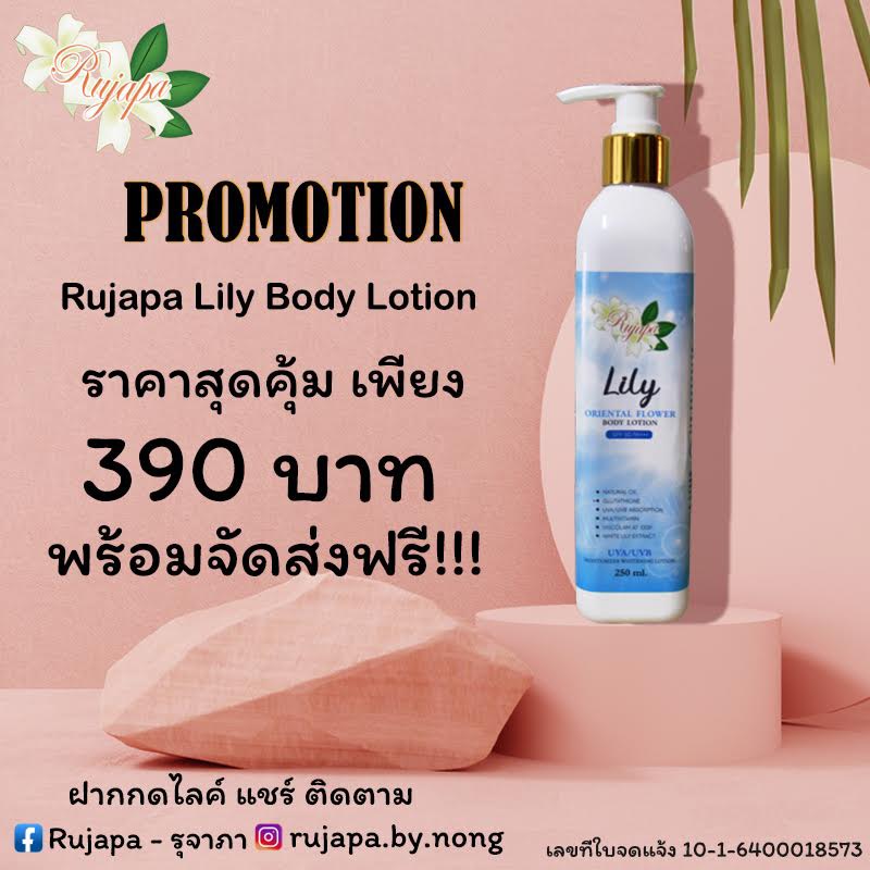 Lily Body Lotion By Rujapa ขนาดความจุ 250 ml. จำหน่ายในราคา 390 บาท โปรโมชั่นพิเศษ “จัดส่งฟรี”