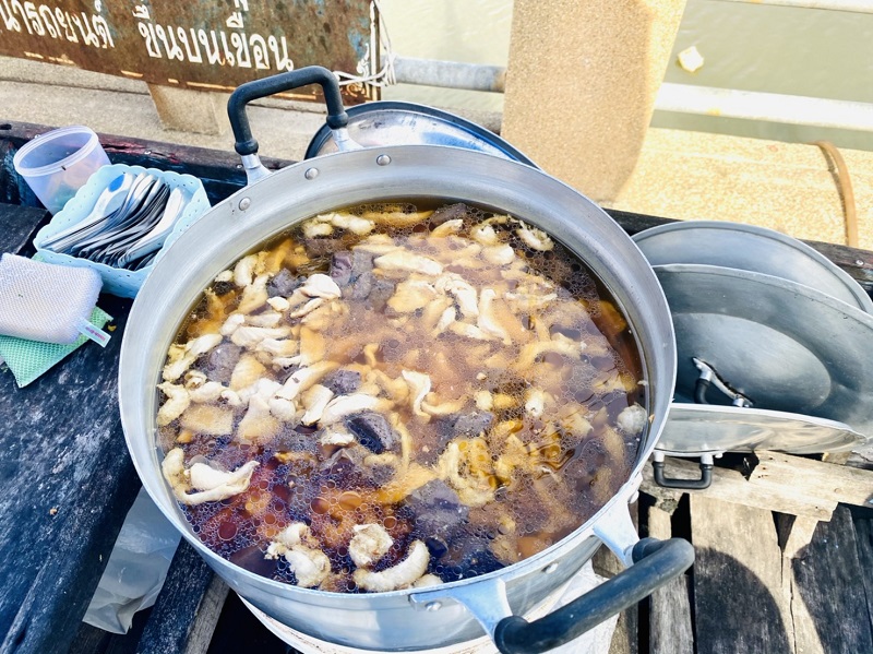 อร่อยครับสำหรับท่านที่ชอบกินข้าวต้มเป็ดพะโล้ ปลาและข้อไก่ ข้าวต้มเป็ดพะโล้เมื่อใส่เป็ดพะโล้ปรุงรสชาติมาแล้วโรยหน้าด้วยต้นหอมผักชีเท่านี้ก็อิ่มท้องเอาการ พร้อมกับชมวิวทิวทัศน์ในแม่น้ำแม่กลองวิถีชาวประมงทะเลของเมืองสมุทรสงคราม “เที่ยวเมืองไทยไม่ไปไม่รู้ ถ้าอยากรู้ต้องออกเดินทางไป…กับ…ผมหนุ่ม’ สุทน” ขอบคุณและสวัสดี