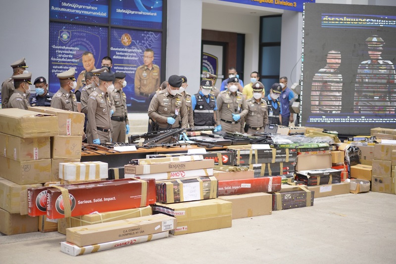 โดยผู้ค้าอาวุธปืน ทั้ง 2 ราย ได้เสนอจำหน่ายอาวุธปืนผ่านช่องทางเว็บไซด์และเพจเฟสบุ๊คในหลายช่องทาง จากการการตรวจค้น พบของกลางจำนวนมาก มีอาวุธปืนยาวไม่มีเครื่องหมายทะเบียน 1,600 กระบอก, อาวุธปืนสั้นไม่มีเครื่องหมายทะเบียน 173 กระบอก และกระสุนปืนตะกั่ว 977,510 นัด