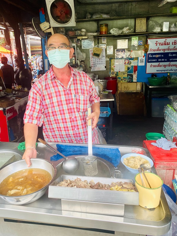 ส่วนติดๆ กันคือ “ร้านก๋วยเตี๋ยวเนื้อ” ร้านเก่าแก่ริมทางรถไฟมีทั้ง ก๋วยเตี๋ยวเนื้อสด เนื้อเปื่อยและลูกชิ้นเนื้อ เอาใจสำหรับท่านที่ชอบทานเนื้อกันเลยครับเลือกได้ตามชอบ สูตรเด็ดของร้านเลยคือน้ำซุปเข้มข้นและเนื้อนุ่ม ๆ พลาดไม่ได้จริง ๆ สำหรับคนชอบทานเนื้อครับ ทุกร้านในตลาดพลูค่อยข้างมีมาตรการในการป้องกันการแพร่ของเชื้อโควิด 19 ได้อย่างดี กันระยะห่างทั้งจากผู้ซื้อและผู้ขาย สำหรับผู้ที่จะเดินทางไปตลาดพลูต้องระมัดระวังและปฏิบัติตามที่ทางร้านแจ้งอย่างเคร่งครัดด้วยนะครับ