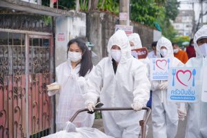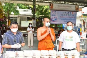 สมาคมเยาวชนจิตอาสาพัฒนา (องค์กรสาธารณประโยชน์) นำโดย ว่าที่ร้อยตรี ธนัท ชัชวาลย์ อุปนายกสมาคมฯ นายชุมสาย ศรียาภัย ที่ปรึกษาสมาคมฯ ครอบครัวแจ่มจำรัส คณะผู้ปกครองและเยาวชน พร้อมด้วยเครือข่ายจิตอาสา ร้านค้ารายย่อย จัดข้าวกล่องอุ่นร้อน เครื่องดื่ม ขนม นม น้ำส้มคั้น ถุงยังชีพ ร่วมสมทบกับคณะผู้บริหาร CPF นำโดย พี่ไก่ นิพนธ์ มุ่ยเรืองศรี เพื่อนำไปแจกจ่ายให้กับชุมชนบริเวณรอบๆ วัดพุทธปัญญา และกระทรวงสาธารณสุข เพื่อบรรเทาความเดือดร้อนในช่วงโควิด-19 แพร่ระบาด ณ วัดพุทธปัญญา จังหวัดนนทบุรี