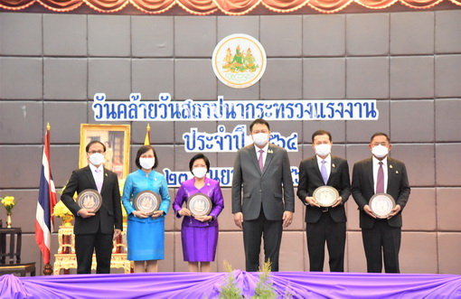 จากนั้น นายสุชาติ ชมกลิ่น รัฐมนตรีว่าการกระทรวงแรงงาน เป็นประธานในพิธีมอบของที่ระลึกสำหรับผู้เกษียณอายุราชการประจำปี พ.ศ. 2564 ณ ห้องจอมพล ป.พิบูลสงคราม ชั้น 5 อาคารกระทรวงแรงงาน ซึ่งมีการถ่ายทอดสดผ่านระบบ VDO Conference และ Facebook Live โดย นายสุชาติ กล่าวว่า กระทรวงแรงงาน ได้เริ่มก่อตั้งมาตั้งแต่ปี พ.ศ.2536 จนถึงปัจจุบัน รวม 28 ปี จากอดีตจนถึงปัจจุบันภารกิจของกระทรวงแรงงานมีการปรับเปลี่ยน และเพิ่มขึ้นเป็นจำนวนมาก โดยเฉพาะในปีงบประมาณ พ.ศ. 2564 กระทรวงแรงงาน ต้องเผชิญกับวิกฤตในหลายๆ ด้าน ทั้งจากสถานการณ์การแพร่ระบาดของโรคโควิด-19 ซึ่งส่งผลกระทบต่อสถานการณ์ทั่วโลก รวมทั้งประเทศไทย ซึ่งได้รับผลกระทบทั้งด้านเศรษฐกิจ และสังคม โดยเฉพาะภาคแรงงานและสถานประกอบกิจการ ซึ่งเป็นสิ่งท้าทายให้กระทรวงแรงงานต้องเร่งแก้ไขปัญหา เพื่อรักษาเสถียรภาพทางเศรษฐกิจ สร้างความเชื่อมั่นให้กับนักลงทุนทั้งชาวไทยและชาวต่างชาติ รักษาระดับการจ้างงาน พร้อมทั้งสร้างขวัญกำลังใจให้กับพี่น้องผู้ใช้แรงงาน โดยกระทรวงแรงงานได้มีมาตรการป้องกัน แก้ไข และเยียวยาในหลายด้าน ได้แก่