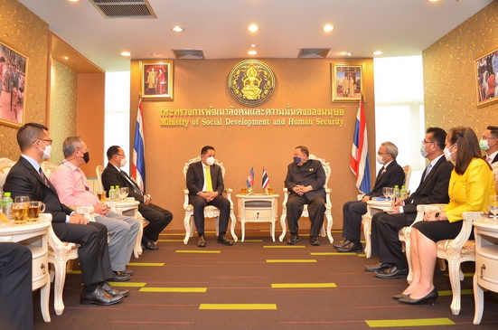 วันอังคารที่ 28 กันยายน 2564 เวลา 15.00 น. ณ ห้องรับรอง ชั้น 9 กระทรวงการพัฒนาสังคมและความมั่นคงของมนุษย์กรุงเทพฯ นายจุติ ไกรฤกษ์ รัฐมนตรีว่าการกระทาวงพัฒนาสังคมและความมั่นคงของมนุษย์ ให้การต้อนรับ Dr. H.E. Sok Sokrethya ที่ปรึกษาส่วนตัว นายกรัฐมนตรีราชอาณาจักรกัมพูชา และรัฐมนตรีช่วยว่าการกระทรวงการท่องเที่ยวกัมพูชา ในโอกาสเข้าเยี่ยมคารวะและหารือถึงแนวทางความร่วมมือด้านงานพัฒนาสังคม