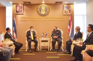 รัฐมนตรีกระทรวงพัฒนาสังคมและความมั่นคงของมนุษย์ ได้กล่าวต้อนรับ ด้วยความอบอุ่นและขอขอบคุณท่านรัฐมนตรีช่วยกระทรวงการท่องเที่ยวจากกัมพูชาที่ให้เกียรติมาเยือนกระทรวงพัฒนาสังคมและความมั่นคงของมนุษย์ในวันนี้ ท่านหวังว่าความสัมพันธ์ที่ดีของสองประเทศจะเจริญก้าวหน้ายิ่งๆ ขึ้นไป