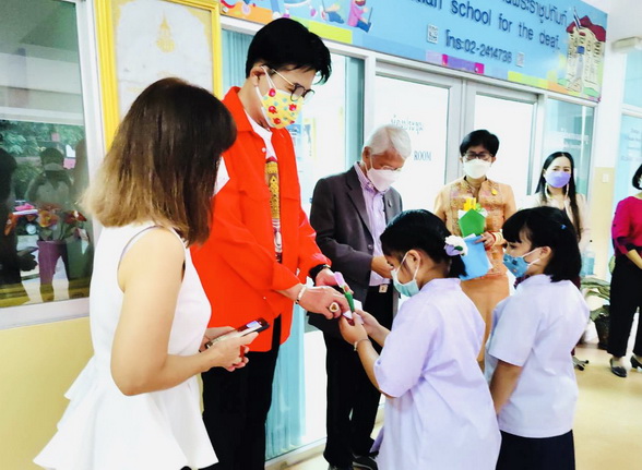 โดยมี ดร.ปนัดดา วงค์จันตา ผู้อำนวยการ และรจนา พวงทอง รองผู้อำนวยการโรงเรียนเศรษฐเสถียร ในพระราชูปถัมภ์ พร้อมคณะครู และเด็กนักเรียนผู้พิการทางการได้ยิน เป็นผู้รับมอบเมื่อวันเสาร์ที่ 2 ตุลาคม 2564 เวลา 15.00 น. ณ ห้องประชุม อาคารวชิรารัศมิ์ทีปังกร โรงเรียนเศรษฐเสถียร ในพระราชูปถัมภ์