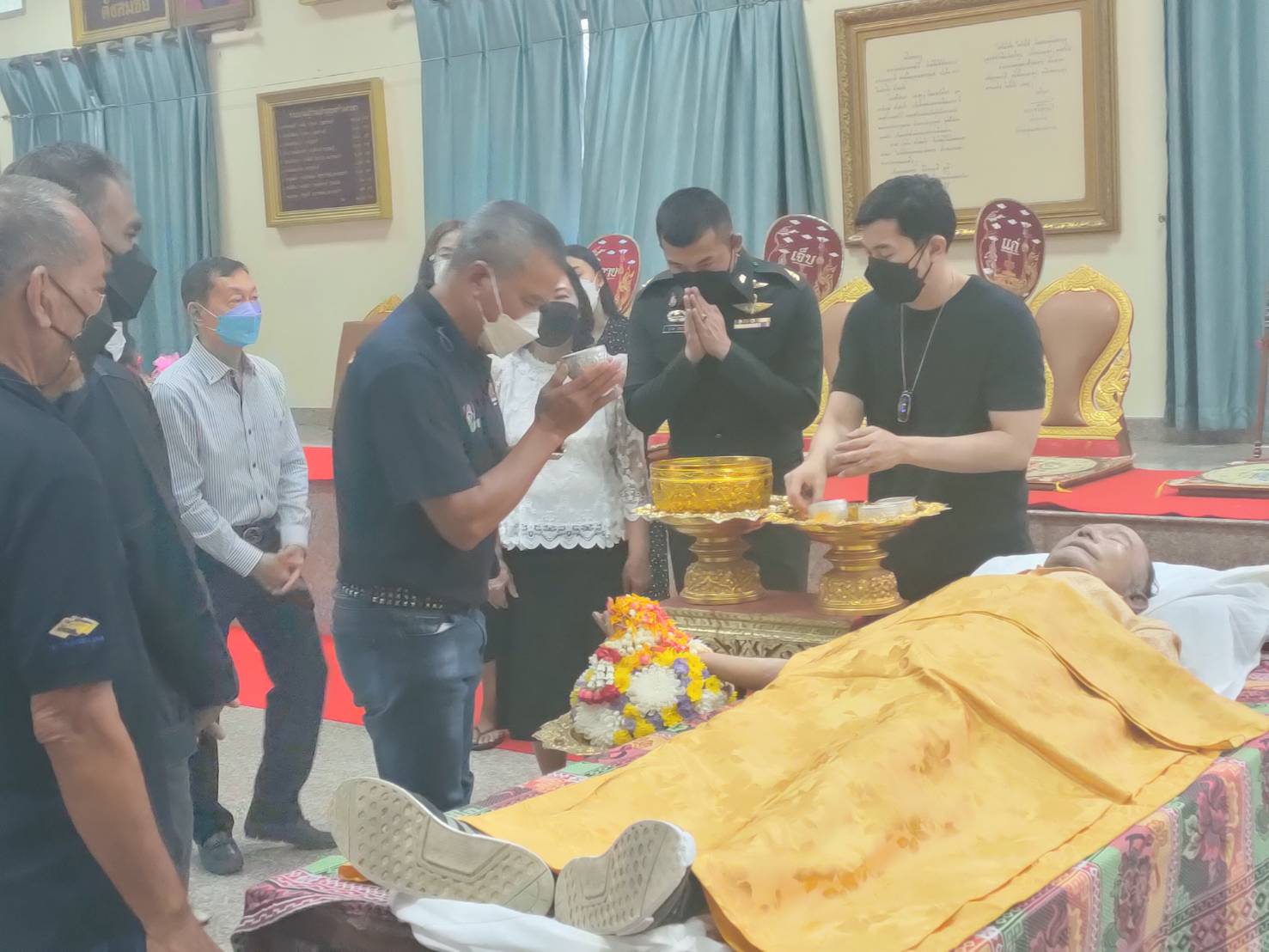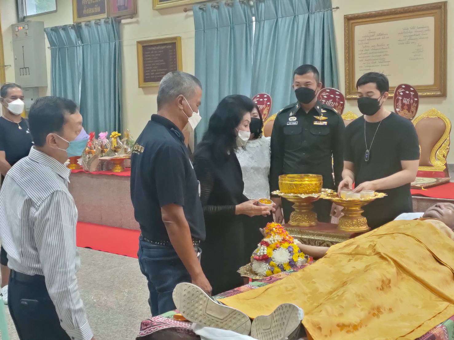 กำหนดพิธีสวดพระอภิธรรม ณ วัดไชยชุมพลชนะสงคราม (วัดใต้) จังหวัดกาญจนบุรี โดยจะรดน้ำศพในวันที่14 ตุลาคม เวลา15.30 น และพิธีสวดอภิธรรม ระหว่างวันที่14-16 ตุลาคม เวลา 19.30 น.