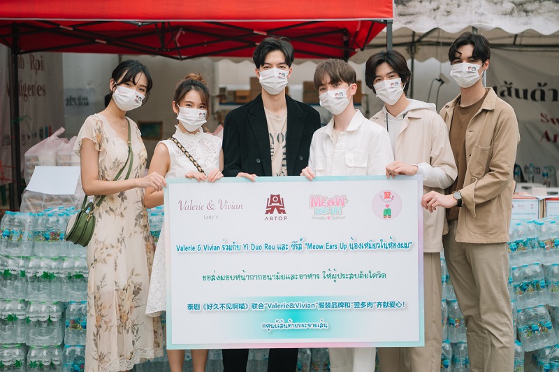 นอกจากกลับมาเดินหน้าลุยถ่ายซีรีส์กันต่อแล้ว กลุ่มนักแสดงนำจากซีรีส์ “น้องเหมียวในห้องผม” Meow Ears up ที่ผลิตโดย บริษัท อาร์ท้อป โปรดักชั่น จำกัด นำทีมโดย  แก๊ป – กิตติชัช เตชาหัวสิงห์, เจมส์ – ประพัฒน์ธรณ์ จักขุจันทร์, ไบรท์ – ธนพล อภิสุทธิไมตรี, โบโด้ –  โบโด เชเฟอร์, คริส – เซณเธอลิณณ์ แทนวิธู และ ปอ – วิชาดา อติเวศย์อังกูร เป็นตัวแทนจาก บริษัท อาร์ท้อป ร่วมกับเสื้อผ้าแบรนด์ Valerie & Vivian และ กระบองเพชร  Yi Duo Rou ขอมีส่วนร่วมช่วยเหลือสังคมกับการบริจาคเครื่องดื่ม ข้าวสาร พร้อมด้วยหน้ากากอนามัย ให้กับกลุ่ม จิตอาสา เส้นด้าย (Zendai) เพื่อนำไปช่วยเหลือผู้ที่ได้รับความเดือดร้อนจากสถานการณ์โควิด 19 ต่อไป