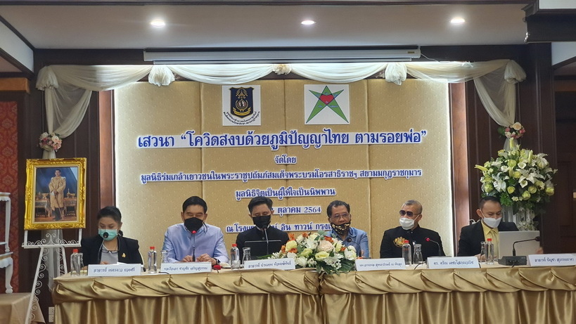 เมื่อวันที่ 21 ตุลาคม 2564 ศ.ดร.ยุวัฒน์  วุฒิเมธี ประธานมูลนิธิร่มเกล้าเยาวชนมูลนิธิร่มเกล้าเยาวชน ในพระราชูปถัมภ์สมเด็จพระบรมโอรสาธิราชฯ สยามมกุฎราชกุมาร​ และ​ พ.อ.นพ.พงศ์ศักดิ์ ตั้งคณา  ประธานมูลนิธิจิตเป็นผู้ให้ใจเป็นนิพพาน จัดเสวนาและแถลงข่าว “ภูมิปัญญาไทยตามรอยพ่อ” ที่โรงแรมทาวน์อินทาวน์ กรุงเทพฯ โดยมีจุดประสงค์เพื่อระดมความคิดที่สร้างสรรค์ และเพื่อรวบรวมข้อมูลการใช้ยาสมุนไพรไทยในการรักษาและป้องกันโรค