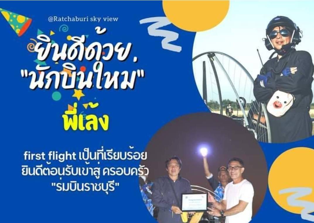 ทั้งนี้เมื่อวันที่ 11 ธันวาคม 2564 ที่ผ่านมา นายศุภมา จิตต์เที่ยง และ และ นาย จรัล บุญเงิน หรือ ปุ๊ ปลาดุกซิ่ง ได้ผ่านการทดสอบ First Flight เป็นนักบินใหม่ จากการขึ้นบินด้วยเครื่องร่มบินเป็นครั้งแรก ณ สนามราชบุรีสกายวิว