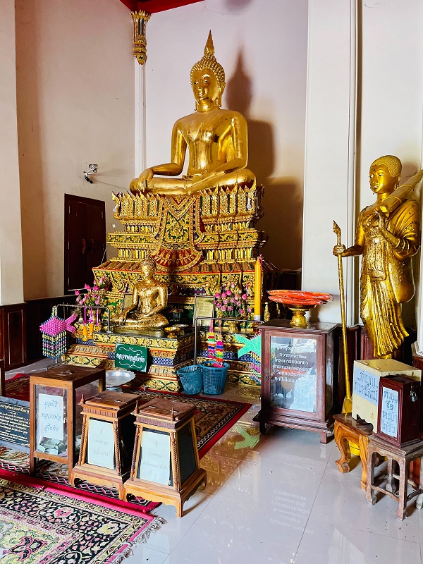 เรื่องที่ 2 สิ่งที่สำคัญของวัดทองประดิษฐ์ คือ องค์พระพุทธรูปเรียก “หลวงพ่อสุโขทัย” เป็นพระพุทธรูปองค์ไม่ใหญ่มากนักแต่ไม่ปรากฏหลักฐานว่าอัญเชิญมาจากที่ใด!!! แต่ดั้งเดิมประดิษฐานอยู่ศาลาท่าน้ำริมน้ำคลองสองพี่น้องคืนวันหนึ่งเกิดเพลิงไหม้ศาลาท่าน้ำโดยไม่ทราบสาเหตุศาลาเสียหายหมดปรากฏว่าองค์พระพุทธรูปหลวงพ่อสุโขทัยไม่เป็นอะไรเลย ด้วยเหตุนี้ท่านพระครูโอภาสศิลวัตรหรือหลวงพ่อแววได้จัดสร้างมณฑปประดิษฐานพระพุทธรูปหลวงพ่อสุโขทัยเมื่อปี พ.ศ. 2500 เป็นมณฑปสวยงาม