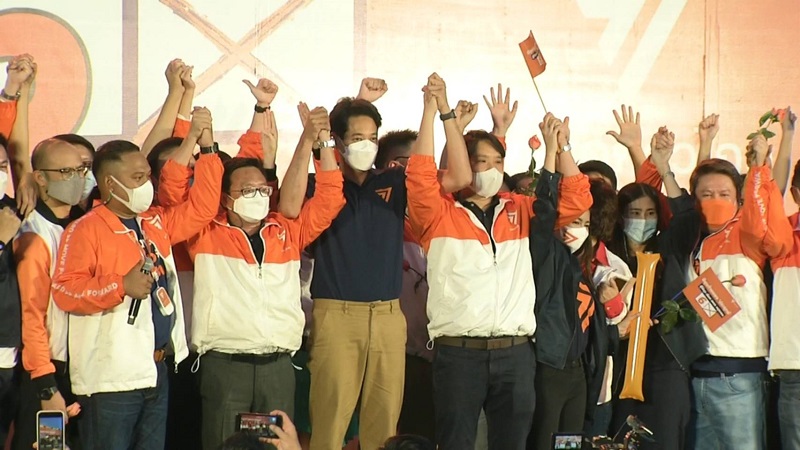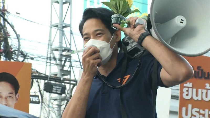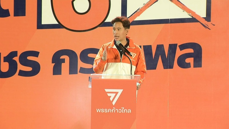 แล้วเมื่อเพชรปราศรัยต่อพร้อมน้ำเสียงหนักแน่นเพื่อขอโอกาสจากประชาชนให้เขาได้เข้าสภา พร้อมวลีเด็ดกระแทกใจที่ว่า ‘เราจะก้มโค้งให้ประชาชน แต่เราจะยืนตรงต่อหน้าเผด็จการ’ หลังจากเพชร กรุณพลก้าวลงจากเวทีก็เป็นหน้าที่ของหัวหน้าพรรคก้าวไกลก็ขึ้นมาปราศรัยต่อเรียกเสียงตบมือไม่น้อยไปกว่าผู้สมัครเลย