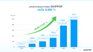 นายสุทธิเกียรติ จันทรชัยโรจน์ กรรมการผู้จัดการ บริษัท ชิปป๊อป จำกัด เปิดเผยว่า “ตลอดช่วงระยะเวลา 6 ปีที่ผ่านมา บริษัทฯ ได้เติบโตและเรียนรู้การก้าวสู่ยุคต่างๆ โดยแบ่งออกเป็น 3 ช่วง โดย SHIPPOP 1.0 เป็นแพลตฟอร์มแรกและบริษัทเดียวในประเทศไทยที่รวบรวมขนส่ง พันธมิตรขนส่งมากกว่า 27 ราย ไว้ในระบบเดียวผ่านการเชื่อมต่อระบบทั้งหมด เพื่อให้เกิดความสะดวก รวดเร็ว ตั้งแต่การทำเรื่องจองขนส่งออนไลน์, เรียกขนส่งเข้ารับพัสดุที่บ้าน, ช่วยพันธมิตรลดต้นทุน, ติดตามพัสดุ, ทีมงานสนับสนุนลูกค้าที่คอยดูแลและพร้อมให้บริการตลอด 24 ชั่วโมง, ระบบเก็บเงินปลายทาง และการเพิ่มประกันมูลค่าพัสดุเสียหาย ต่อมา SHIPPOP ได้เรียนรู้ถึงโอกาสในการขยายการบริการนี้ จึงเกิดความคิดเพื่อการเติบโตของธุรกิจด้วยการเปิดโอกาสให้ทุกคนสามารถเป็นเจ้าของ SHIPPOP ได้ ทำให้ต่อยอดเป็น SHIPPOP 2.0 โดยเริ่มต้นจากการทำแฟรนไชส์ ร้านรับฝากพัสดุ ซึ่งภายใน 1 ปี SHIPPOP ขยายสาขามากกว่า 1,200 สาขา ครอบคลุมทั่วประเทศ และยังมีบริการส่งของภายนอกประเทศ (International Shipping) อีกทั้งยังได้เริ่มสร้างระบบ AI & Machine Learning จัดเก็บ Data จนมีข้อมูลในระบบมากกว่า 100,000,000 ข้อมูล ที่พร้อมนำไปใช้งานต่อยอดทางธุรกิจ ส่งผลให้รายได้และการเติบโตของ SHIPPOP เพิ่มขึ้นอย่างมหาศาล ในปี 2564 ที่ผ่านมา SHIPPOP ได้รับรางวัล Startup of the Year (PRIME MINISTER AWARD) และ รางวัล Best Small Franchise Award (จากกรมพัฒนาธุรกิจการค้า กระทรวงพาณิชย์) อีกทั้งยังสร้างรายได้มากกว่า 500 ล้านบาท และมียอดจำนวนการจัดส่งพัสดุมากกว่า 11 ล้านชิ้น ยอดขนส่งเก็บเงินปลายทาง สูงถึง 1,350 ล้านบาท ถือได้ว่าเป็นบริษัทสตาร์ตอัพที่มีกำไร และการเติบโตเป็นที่สนใจในวงการขนส่งอย่างมาก