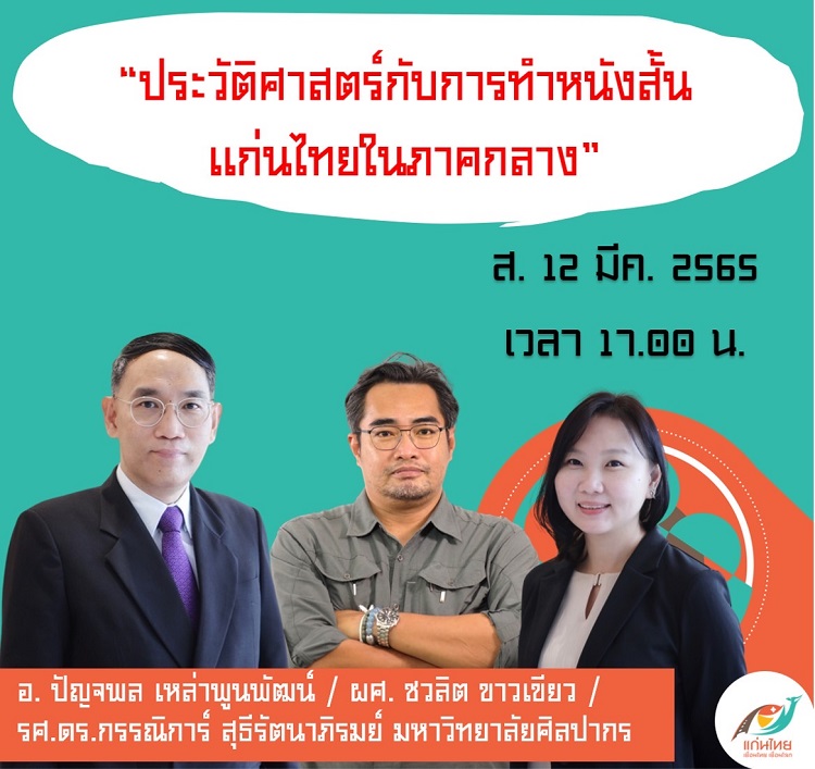 กระทรวงการอุดมศึกษา วิทยาศาสตร์ วิจัยและนวัตกรรม (อว.) สำนักงานการวิจัยแห่งชาติ (วช.) ธัชชา วิทยสถาน สังคมศาสตร์ มนุษยศาสตร์ และ ศิลปกรรมสาสศตร์ ร่วมกับมหาวิทยาลัยศิลปากร และองค์การกระจายเสียงและแพร่ภาพสาธารณะแห่งประเทศไทย (Thai PBS) จัดโครงการประกวดภาพยนตร์สั้นประวัติศาสตร์ ภายใต้แนวคิด “แก่นไทย เชื่อมไทย เชื่อมโลก” โดยจัดให้มีกิจกรรมเสริมสร้างประสบการณ์สนุกกับการทำหนังสั้นประวัติศาสตร์ รูปแบบ Workshop Online เพื่อให้ความรู้ และเสริมสร้างประสบการณ์สนุกกับการทำภาพยนตร์สั้นประวัติศาสตร์ ให้กับนักเรียน นิสิต นักศึกษา และผู้ที่สนใจสร้างภาพยนตร์สั้นผ่านระบบ Zoom และ Live Streaming ผ่านทาง เฟซบุ๊ก แก่นไทย โครงการประกวดภาพยนตร์สั้นประวัติศาสตร์ เมื่อวันที่ 12 มีนาคม ที่ผ่านมา
