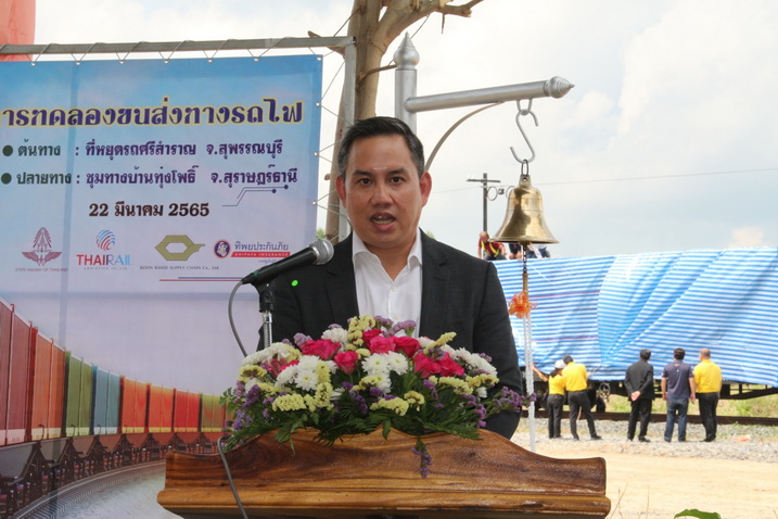 นายฐากูร อินทรชม ผู้อำนายการฝ่ายปฏิบัติการเตินรถ การรถไฟแห่งประเทศไทย กล่าวว่า ถือฤกษ์วันนี้เป็นการทดลองเดินรถไฟขนส่งสินค้าในทุกขั้นตอน เป็นก้าวแรก ถ้าวันนี้สำเร็จจะมีการขนส่งต่อเนื่องต่อไป โดยครั้งนี้เป็นการขนส่งเที่ยวเดียวแบบวางและผูกมัดจำนวน 10 แคร่ รวมเป็นเส้นทางกว่า 400 กิโลเมตร ซึ่งจะใช้เวลาประมาณ 12-13 ชั่วโมง สินค้าทั้ง 10 แคร่จะถึงปลายทางพร้อมกัน แตกต่างจากการขนส่งทางรถยนต์ไม่มาก ขณะที่ต้นทุนการขนส่งต่อกิโลเมตรต่ำกว่า ครั้งนี้เป็นครั้งแรกที่มีขนส่งจากสุพรรณบุรีและพร้อมจะขยายเพิ่มจุดขนส่งที่เหมาะสมแก่ผู้ประกอบการได้ในอนาคต