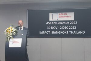 มร.ไมเคิล วิลตัน   กรรมการผู้จัดการ บริษัท เมสเซ่ มิวนิค จำกัด โดย บริษัท เอ็มเอ็มไอ เอเชีย จำกัด เปิดเผยว่า งานASEAN Ceramics 2022 ที่กำลังจะจัดขึ้น จะส่งเสริมความรู้ ความร่วมมือ และการเติบโตในอุตสาหกรรมผ่านการแลกเปลี่ยนความคิด ส่งเสริมความสัมพันธ์ นำเสนอเทคโนโลยีและโซลูชั่นใหม่ๆ และการเปิดตลาดต่อไป