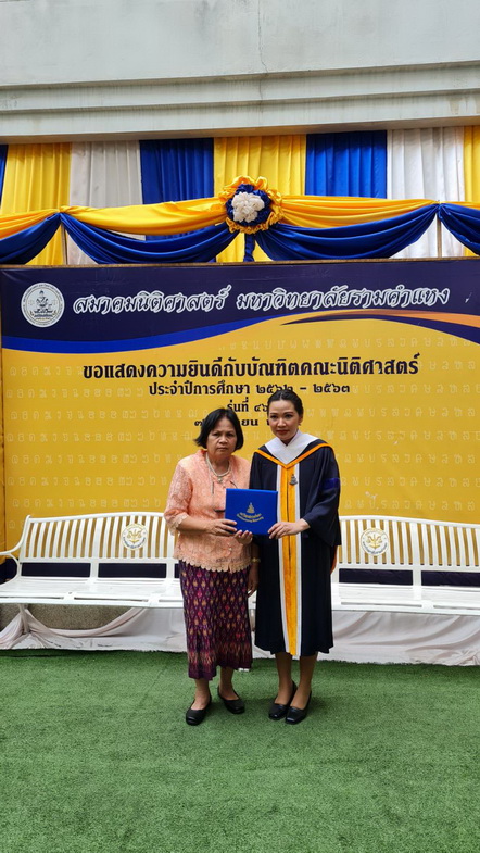 สมาคมนิติศาสตร์มหาวิทยาลัยรามคำแหง นำโดย นายคณิต วัลยะเพ็ชร์ นายกสมาคมนิติศาสตร์ มหาวิทยาลัยรามคำแหง และ พล.ต.ต.นิพนธ์ ภู่พันธ์ศรี อดีตนายกสมาคมนิติศาสตร์มหาวิทยาลัยรามคำแหง (นายกผู้ก่อตั้งสมาคมฯ) พร้อมด้วยคณะกรรมการสมาคมฯ ได้จัดกิจกรรมต้อนรับและแสดงความยินดีกับบัณฑิตที่สำเร็จการศึกษาจากคณะนิติศาสตร์ มหาวิทยาลัยรามคำแหงเพื่อเป็นการเชิดชูเกียรติโดยทำซุ้มแบ็คดร็อปเก๋ ๆ หลายซุ้ม ให้บัณฑิตได้ถ่ายรูปเป็นที่ระลึก พร้อมบริการน้ำดื่มสิงห์ฟรี