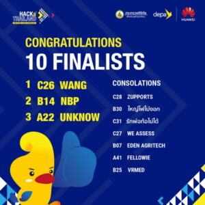 11 เมษายน 2565, กรุงเทพมหานคร – ดีป้า พร้อมพันธมิตรภาครัฐและภาคเอกชน ร่วมประกาศรายชื่อและมอบรางวัลแก่ 10 สุดยอดทีมผู้เข้าแข่งขันจากกิจกรรม HACKaTHAILAND Competition & Beyond Hackathon ที่มาร่วมไขโจทย์แก้ปัญหาระดับชาติในการขับเคลื่อนอุตสาหกรรม 3 กลุ่มหลักของประเทศ ภายหลังขับเคี่ยวกันมายาวนานถึง 168 ชั่วโมง จนได้มาซึ่งสุดยอดนวัตกรรมที่จะมาช่วยพลิกโฉมประเทศ