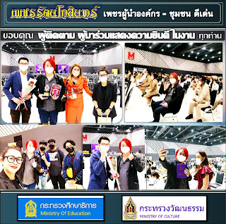 + ขอบคุณ เกียรติบัตร จากกระทรวงศึกษาธิการกระทรวงวัฒนธรรม องค์กรภาคีเครือข่าย และโล่พระราชทาน จาก ‘พระเจ้าวรวงศ์เธอ พระองค์เจ้าอทิตยาทร กิติคุณ’ +