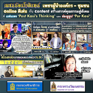 + ผลงาน จากพศ.2560 – 2565 กับการผลิต Content สร้างสรรค์คุณธรรม สู่สังคม สร้างแรงบันดาลใจ ให้แนวคิดคุณภาพ แก่ผู้รักการพัฒนาตัวเอง และมีเสียงเพลงในหัวใจ .. ผ่านเฟสบุ๊คส่วนตัว เฟสบุ๊คแฟนเพจ “Post Kasi’s Thinking” และ ข่องยูทูป’Por Kasi’ +