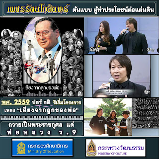 + ผลงาน จากพศ.2559 เป็นผู้ริเริ่มโครงการ เพลง “เสียงจากลูกของพ่อ” ถวายเป็นพระราชกุศล แด่พ่อหลวงร.9 +