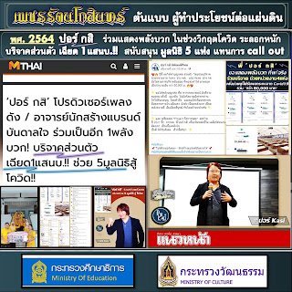 + ผลงาน จาก พศ.2564 ปอร์ กสิ ร่วมแสดงพลังบวก ในช่วงวิกฤตโควิด ระลอกหนัก! บริจาคส่วนตัว เฉียด 1แสนบ.! สนับสนุน มูลนิธิ 5 แห่ง แทนการ call out+