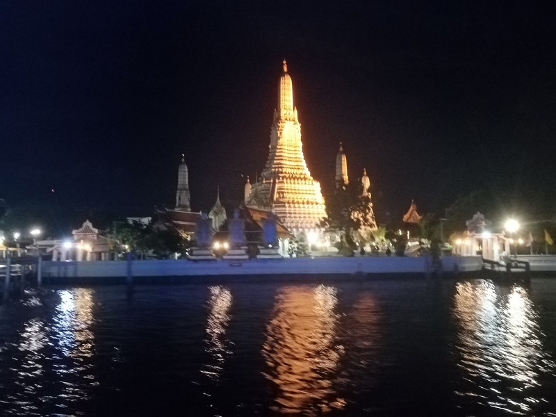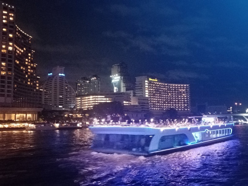 จุดเดินทางของเราจากท่าเรือศูนย์การค้าไอคอนสยาม ขึ้นทางเหนือผ่านจุดชมความงามทั้งท่าช้างวังหน้า วัดโพธิ์, พระบรมมหาราชวัง ผ่านสะพานพุทธ สะพานสมเด็จพระปิ่นเกล้าเจ้าอยู่หัว ผ่านสะพานพระราม 8 ก่อนที่จะบ่ายหัวเรือกลับอีกฝั่งของเจ้าพระยา กลับมาทางเดิม ผ่านสะพานสาธร สะพานพระราม 3 สะพานกรุงเทพฯ และชมความงามของเอเซีย ทีค บรรยากาศสองฝั่งเจ้าพระยาในช่วงนี้ แม้แสงสีของไฟในยามราตรีอาจจะน้อยไปหน่อย คงเป็นเพราะค่าไฟแพง น้ำมันแพงมหาศาล เราจึงได้เห็นเรือสำราญน้อยไปสักนิด คงต้องรอเวลาในการฟื้นฟูรอรับนักท่องเที่ยวจากประเทศจีน ซึ่งยังไม่สามารถเดินทางมาได้ จีนปิดประเทศ นักท่องเที่ยวจากจีนจึงน้อยไปหน่อย แม้ว่าเราจะทลายเงื่อนไขในการเข้าประเทศให้น้อยลง และ เปิดประเทศให้กว้างขึ้น ในอนาคตอันใกล้นี้ ทางชมรมธุรกิจท่องเที่ยวไทย จะเป็นส่วนหนึ่งนำสมาชิกคนไทย ได้มาช่วยกันฟื้นฟูผู้ประกอบการนำเที่ยวทางแม่น้ำเจ้าพระยาขึ้นมาอีก เสียเงินไม่มากราคาแค่หลักร้อยแต่วิวหลักล้านกับเรือสำราญ อาหารเลิศหรูดนตรียอดเยี่ยม ลองมาสัมผัสดูจะรู้ว่า สมายด์ริเวอร์ไซด์ ดินเนอร์ครูสท์ คือจุดท่องเที่ยวแห่งการพักผ่อนอย่างแท้จริง