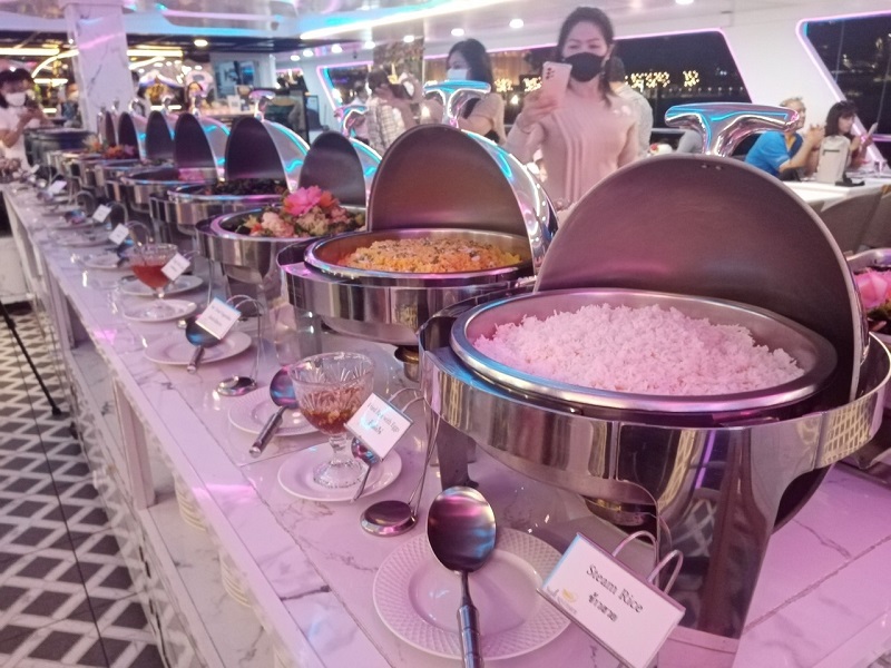 จุดนัดพบเพื่อลงเรือที่ท่าเรือของศูนย์การค้าไอคอนสยาม ย่านคลองสานศูนย์การค้าชื่อดังที่มีความพร้อมและความสวยงาม ที่จะทำให้นักท่องเที่ยวได้อิ่มเอมกับเทศกาลผลไม้โดยเฉพาะทุเรียนในยามนี้มีบุพเฟต์ทุเรียนให้ได้ลองลิ้มชิมกันกับทุกเรียนหลากหลายสายพันธุ์ทั่วประเทศ มาอยุ่ตรงนี้ ก่อนที่จะลงเรือสำราญ มีการตรวจวัดทุกคนก่อนขึ้นเรือ ช่วงหัวค่ำมีการแสดงน้ำพุดนตรีของทางศูนย์การค้าไอคอนสยาม แสดงให้ชมเป็นบุญตา แล้วมาเช็กบัตรที่นั่งบนเรือว่านั่งตรงจุดไหน พวกเราสั่งจองในโซน S1 ซึ่งอยู่ใกล้ที่ตั้งอาหารมากที่สุด ตรงหัวเรือจะเป็นเวทีการแสดงรำไทย และ มีดนตรีขับกล่อมตลอดเส้นทางเดินเรือสำราญคืนนี้