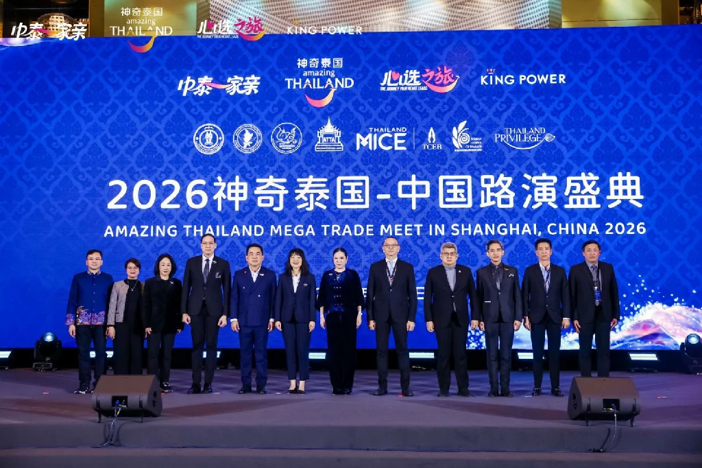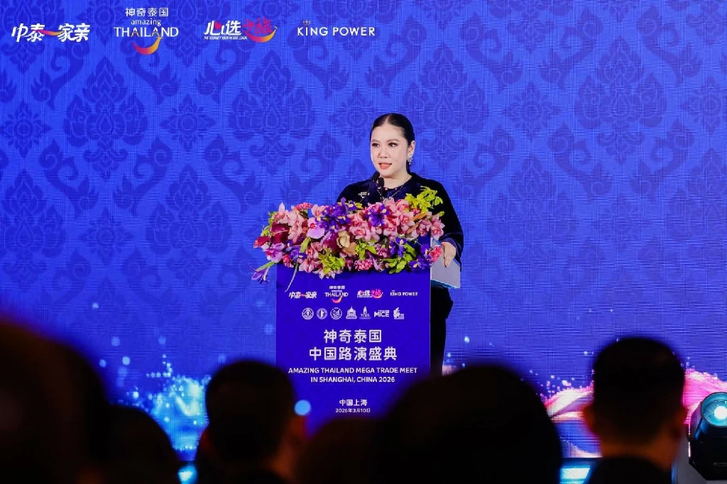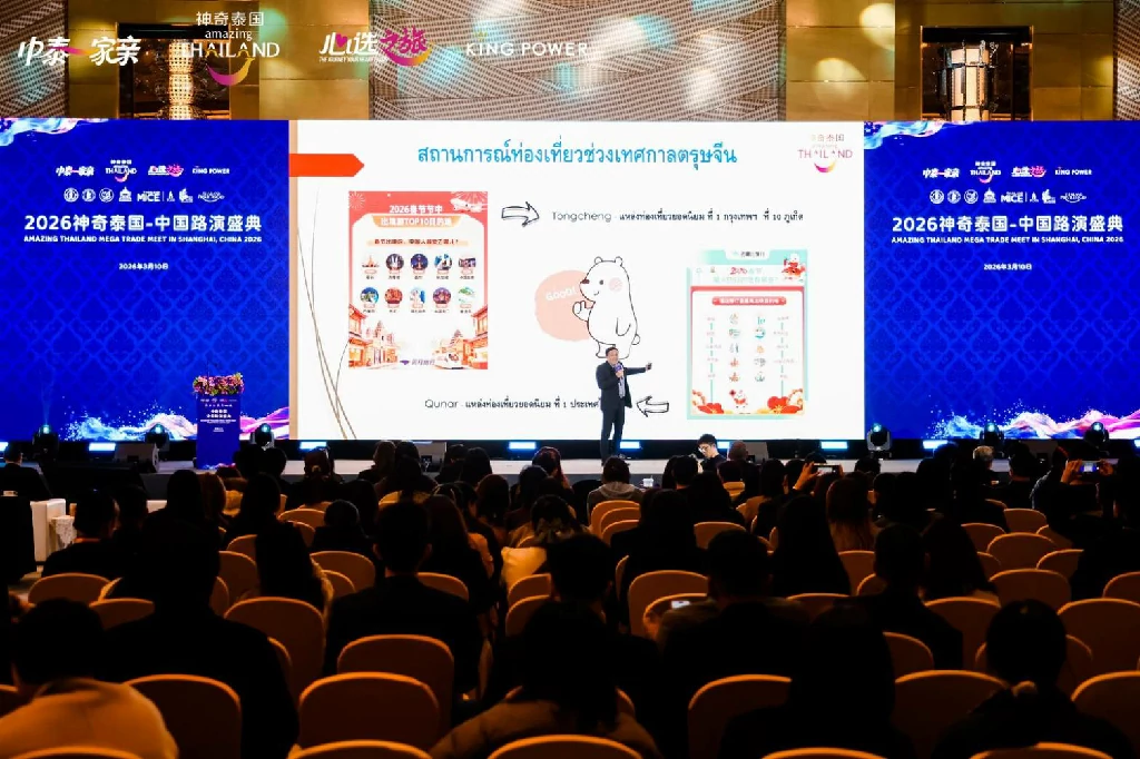 วันที่ 10 มีนาคม 2569 การท่องเที่ยวแห่งประเทศไทย (ททท.) จัดงาน “Amazing Thailand Mega Trade Meet in China 2026” ณ โรงแรม Jing An Shangri-La, Shanghai นครเซี่ยงไฮ้ สาธารณรัฐประชาชนจีน โดยมี นางสาวฐาปนีย์ เกียรติไพบูลย์ ผู้ว่าการการท่องเที่ยวแห่งประเทศไทย (ททท.) เป็นประธานเปิดงาน เพื่อส่งเสริมความร่วมมือทางการท่องเที่ยวและกระตุ้นการเดินทางของนักท่องเที่ยวจีนสู่ประเทศไทย
