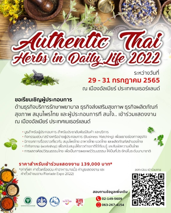 Thai Herbs in daily life 2022 ระหว่างวันที่ 29-31 กรกฎาคม 2565 ณ เมืองอัลเมียร์ ประเทศ