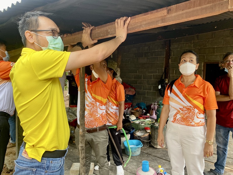 นายกอี๊ด พัฒน์นรี แทนขุนทด นายกหญิงแห่ง อบต.ตะเคียน ผุดโครงการ ด้วยสำนึกรักบ้านเกิด นำกำลังพลพร้อมอุปกรณ์ ลงช่วยบูรณะบ้าน สองตายายพิการ หลังทราบเรื่องสองผู้เฒ่าต้องทนนอนให้ฝนสาด