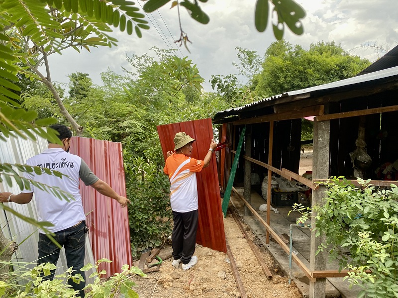 นายก อบต.ตะเคียน กล่าวต่อว่า หลังเสร็จสิ้นการประเมิณ ตนเองได้รับทราบว่าเป็นเหตุที่ต้องช่วยอย่างเร่งด่วน จึงรีบแจ้งไปยัง นายอำเภอ และ ปลัดฝ่ายความมั่นคง อ.ด่านขุนทด พร้อมประสานขอความอนุเคราะห์ ในเรื่องอุปกรณ์ที่จะนำมาสร้างบ้านให้สองตายาย ซึ่งต้องขอขอบคุณ ร้านแดงวัสดุค้าไม้ อ.ด่านขุนทด ที่สนับสนุนแผ่นเมทัลชีทและอุปกรณ์ในการดำเนินการทั้งหมด โดยตนเอง ได้สั่งการให้ทีมงานที่เป็นผู้ชายของ อบต.ตะเคียน ลงพื้นที่ช่วยกันซ่อมแซม ทั้งเปลี่ยนเสาคาน เปลี่ยนสังกะสีเป็นเมทัลชีท รอบบริเวณด้านหน้าที่ผุพัง