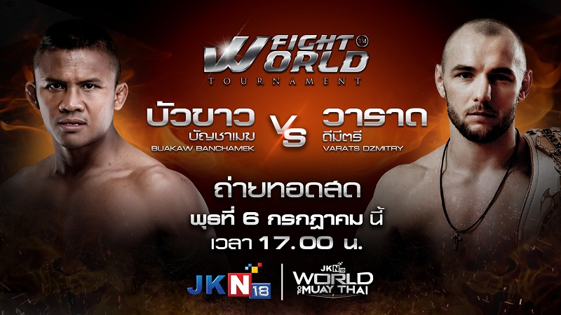 สำหรับรายการ World Fight Tournament (เวิลด์ ไฟท์ ทัวร์นาเมนต์) เป็นรายการระดับโลกที่รวบรวมขุนพลนักชกหลากหลายประเทศ รวมไปถึงรายการนี้ยังได้พบกับนักชกหญิงอีกด้วย ซึ่งเป็นรูปแบบมวย 3 ยก กติกาแบบ Kick Boxing (คิกบ็อกซิ่ง) ประเดิมวันแรกแฟนมวยจะได้พบกับการกลับมาอีกครั้ง อย่าง “บัวขาว บัญชาเมฆ” ที่หลายคนรอคอย เตรียมขึ้นสังเวียนในวันที่ 6 ก.ค.นี้ งานนี้แฟนมวยห้ามพลาด มาร่วมกันเชียร์ขุนพลนักชก พิชิตชัยระดับโลก ใครจะคว้าเข้มขัด World Fight ไปได้ ติดตามรับชมได้ทางช่อง JKN18”