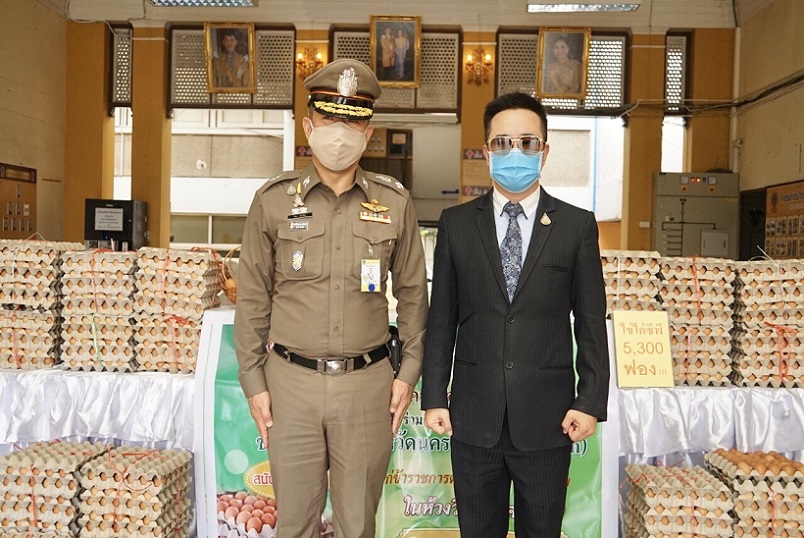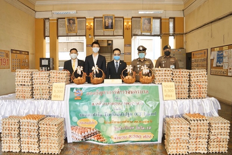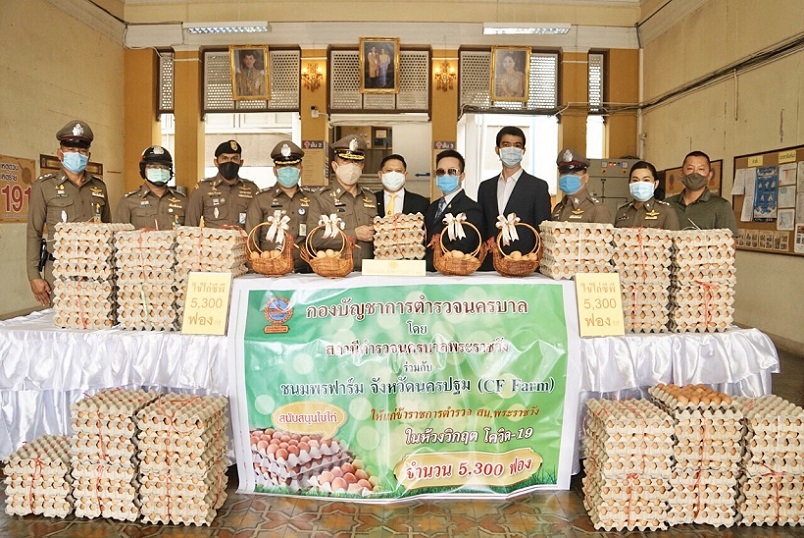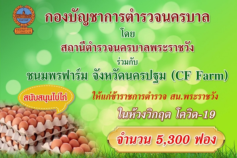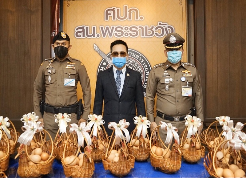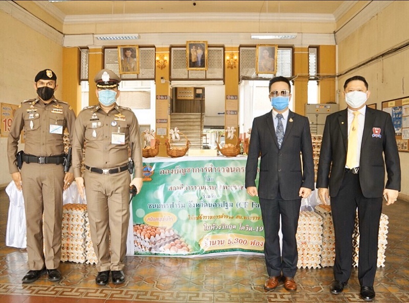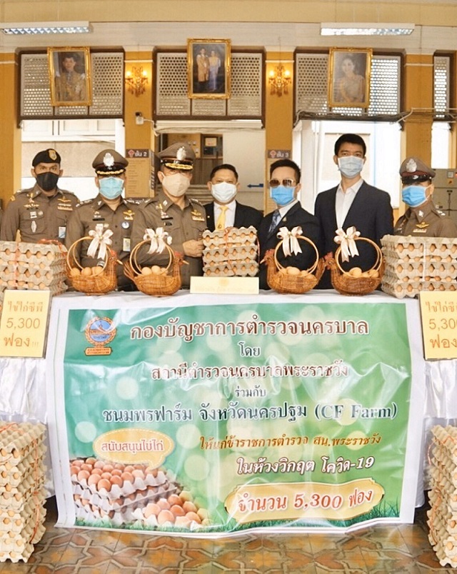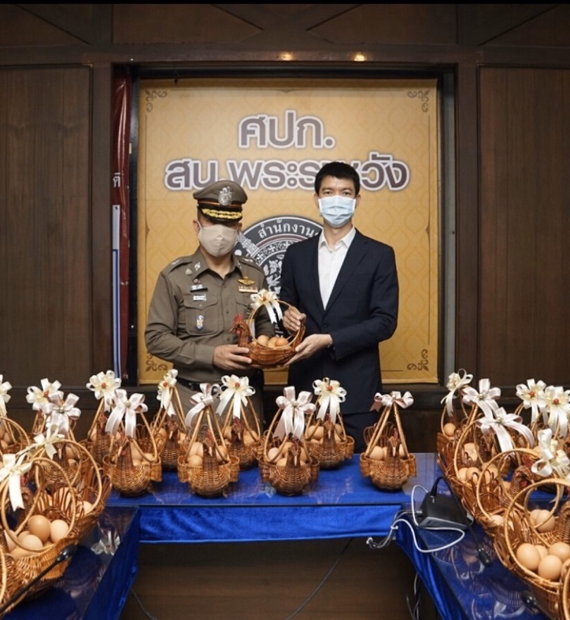 และมอบไข่ไก่จำนวน ๕,๓๐๐ ฟอง พร้อมกระเช้าไข่ไก่จำนวน ๑๐๐ ชุด เพื่อส่งกำลังใจนี้ไปยังข้าราชการตำรวจนครบาลผู้ปฏิบัติงานในช่วงเวลาเคอร์ฟิว เพื่อสกัดกั้นการแพร่ระบาดของโรคโควิด – 19