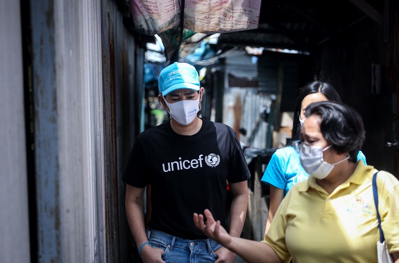 โดย “เป๊ก ผลิตโชค” Friend of UNICEF กล่าวว่า “จากปีที่ผ่านมา ผมเห็นถึงความลำบากของครอบครัวน้องหลู่ ที่อาศัยอยู่ในเล้าไก่ ไม่มีแม้ฟูกนอน ไม่มีอุปกรณ์อำนวยความสะดวกและไม่ได้ทานอาหารที่มีประโยชน์ ปีนี้ผมมีโอกาสได้รับรู้ปัญหาของเด็ก ๆ และครอบครัวในชุมชนคลองเตยกับผลกระทบจากโควิด-19 และได้ไปเห็นความเป็นอยู่และรับรู้เรื่องราวชีวิตของน้องน้ำทิพย์ที่คลองเตย ผมดีใจที่ได้มาร่วมงานกับยูนิเซฟ และได้เรียนรู้โครงการกล่องมหัศจรรย์ ซึ่งในกล่องเต็มไปด้วยของเล่นส่งเสริมพัฒนาการของเด็ก ๆ หนังสือนิทาน และสมุดวาดภาพระบายสี ที่มาพร้อมกับคู่มือสำหรับพ่อแม่ในการกระตุ้นการเรียนรู้ของลูก ๆ ที่บ้าน ผมคิดว่านี่คือกล่องมหัศจรรย์ที่มีความหมายกับเด็กมาก ๆ โดยเฉพาะในช่วงแพร่ระบาดและในยามที่เกิดเหตุการณ์ฉุกเฉินครับ”