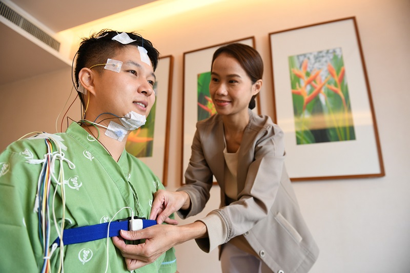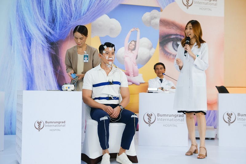 พญ. เบญจมาศ อินทรโภคา แพทย์ชำนาญการด้านโรคระบบหายใจและเวชศาสตร์การนอนหลับ โรงพยาบาลบำรุงราษฎร์ กล่าวว่า ปัญหาการนอนที่พบบ่อยมากที่สุดและมาปรึกษาแพทย์ที่ ‘คลินิกคุณภาพการนอนหลับ’ โรงพยาบาลบำรุงราษฎร์ คือ ภาวะนอนกรนหยุดหายใจขณะหลับ รองลงมาคืออาการนอนไม่หลับ โดยเบื้องต้นแพทย์จะทำการประเมินซักถามผู้ป่วย และทำการวินิจฉัยเพื่อหาสาเหตุ โดยส่วนใหญ่แพทย์จะทำการตรวจวินิจฉัยด้วยเครื่องตรวจการนอนหลับ (Sleep Test) ด้วยระบบคอมพิวเตอร์ ซึ่งเป็นการตรวจที่เป็นมาตรฐาน (Gold Standard) ที่มีความละเอียดแม่นยำมากที่สุด ตรวจในห้องปฏิบัติการตรวจการนอนหลับในโรงพยาบาลเป็นเวลา 1 คืน โดยจะมีเจ้าหน้าที่ดูแลสังเกตอาการอย่างใกล้ชิดตลอดทั้งคืน ทำให้ได้ผลวิเคราะห์ที่แม่นยำและทราบถึงสาเหตุแท้จริงของปัญหาการนอน ซึ่งจะทำให้แพทย์สามารถวางแผนการรักษาได้อย่างมีประสิทธิภาพ โดยการตรวจ Sleep Test ด้วยระบบคอมพิวเตอร์ ประกอบด้วย 3 ส่วนหลักๆ คือ
