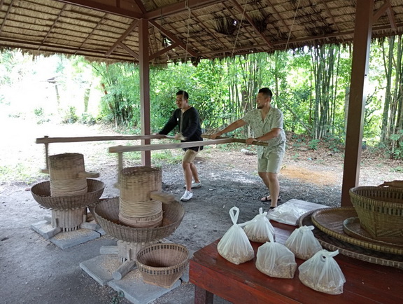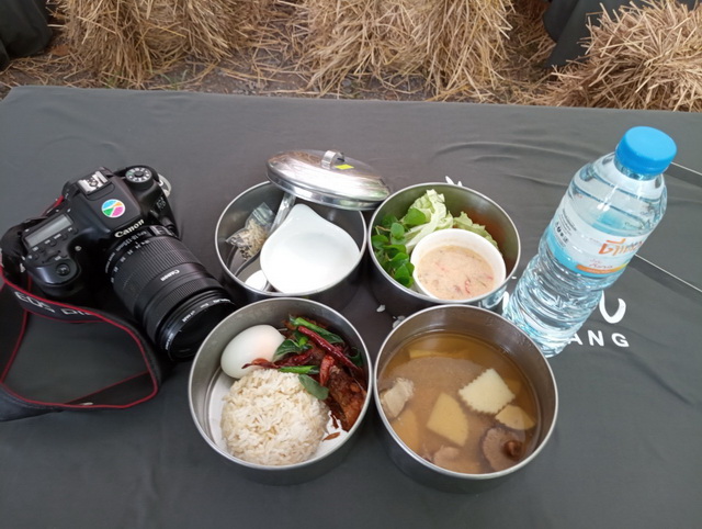 อาหารพื้นถิ่นของชาวลาวเวียงวันนี้ จัดใส่ปิ่นโตให้รับประทานกันอย่างอร่อยๆกับสถานที่เป็นโต๊ะที่นั่งทำมาจากกองฟาง เราเอ็นจอยกับอาหารอร่อยๆหลังจากที่เดินสำรวจความสวยงามและความพร้อมของ “ภูกะเหรี่ยง” ที่สร้างสีสันให้หลงไหลกับชุมชมลาวเวียง ที่มาฝังรกรากมาจนถึงวันนี้