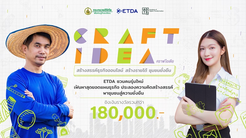 สำนักงานพัฒนาธุรกรรมทางอิเล็กทรอนิกส์(สพธอ.) หรือ ETDA(เอ็ตด้า) กระทรวงดิจิทัลเพื่อ เศรษฐกิจและสังคม เดินหน้าต่อ จัดการแข่งขันโครงการจัดกิจกรรมนำเสนอผลงานธุรกิจ อีคอมเมิร์ซ ชุมชน(Business Pitching) ในกิจกรรม “Craft Idea” สร้างสรรค์ธุรกิจออนไลน์ สร้างรายได้ ชุมชนยั่งยืน ที่เปิดโอกาสให้คนรุ่นใหม่ด้านดิจิทัลร่วมส่งไอเดียเพื่อเฟ้นหาสุดยอดโมเดลธุรกิจอีคอมเมิร์ซพาสินค้าบริการชุมชนสู่แพลตฟอร์มดิจิทัลเพื่อยกระดับความสามารถด้านการทำธุรกรรมออนไลน์ ซึ่งเป็นหัวใจสำคัญของการขับเคลื่อนเศรษฐกิจดิจิทัล