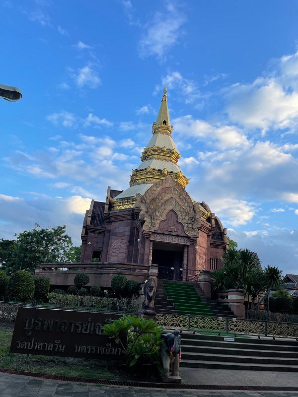วัดที่ 5 วัดป่าสาลวัน เป็นวัดป่าสมชื่อจริง ๆ ครับ เพราะมีต้นไม้ใหญ่หลายชนิดร่มรื่นมากครับ มากราบบูชาพระบรมสารีริกธาตุและพระธาตุของพระเกจิอาจารย์ชื่อดังในภาคอีสาน เช่น หลวงปู่มั่น ภูริทัตโต