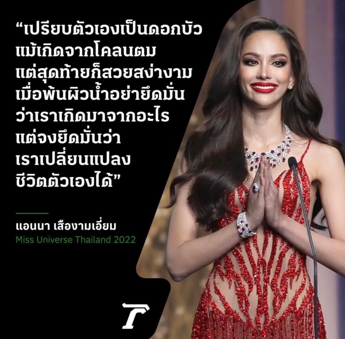 ประมวลภาพ “แอนนา เสืองามเอี่ยม” MUT 19 สาวงามวัย 23 ปี ที่เติบโตมาจากกองขยะและข้าวก้นบาตรพระ เนื่องจากทั้งคุณพ่อและคุณแม่ทำงานเป็นพนักงานเก็บขยะของกทม. บากบั่นสู้ชีวิตจนจบการศึกษาจากคณะศิลปศาสตร์และวิทยาศาสตร์ มหาวิทยาลัยเกษตรศาสตร์ ด้วยเกียรตินิยมอันดับ 1 พาความสวยงามสะดุดตา แถมมากความสามารถ กระทั่งคว้ามงกุฎมิสยูนิเวิร์สไทยแลนด์ 2022 ไปครอง พร้อมเตรียมมุ่งสู่เป้าหมายเดินหน้าสู่เวที ‘มิสยูนิเวิร์ส 2022’ เวทีนางงามระดับโลกต่อไป