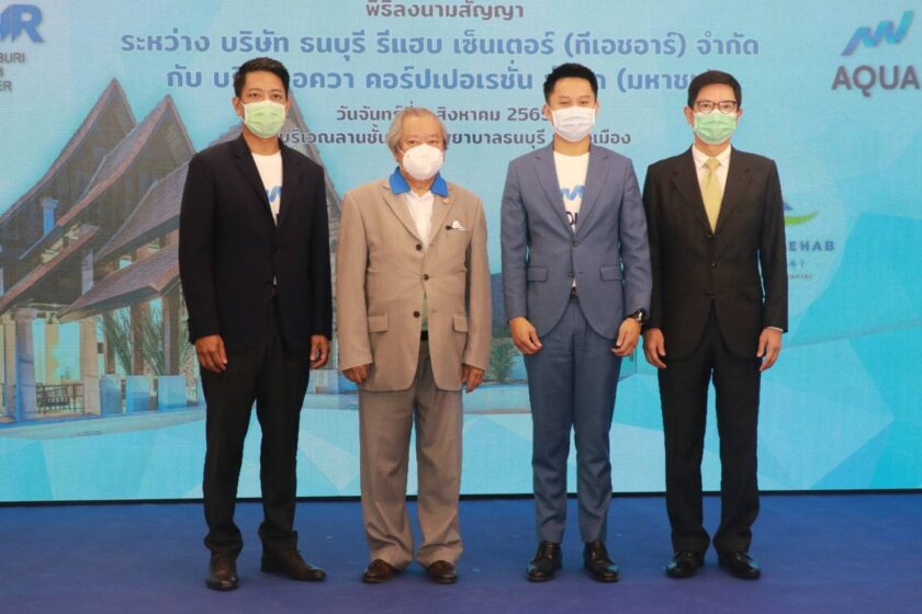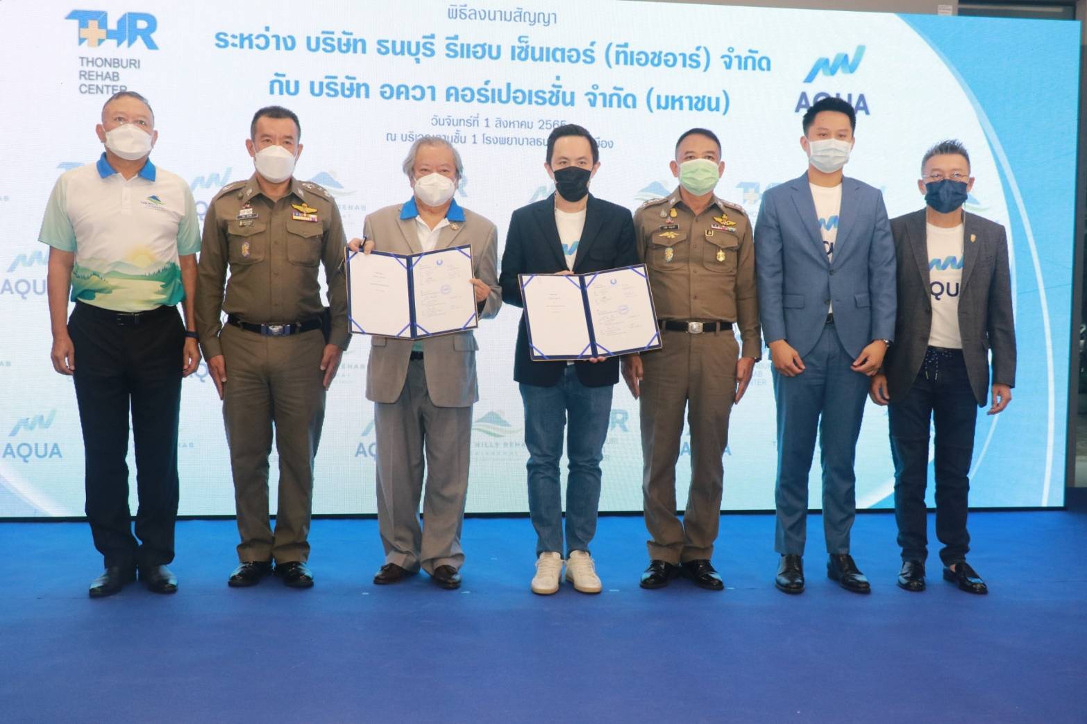 โดยได้รับเกียรติจากนายฉาย บุนนาค ตัวแทนบริษัท อควา คอร์เปอเรชั่น จำกัด และ ศ.เกียรติคุณ ดร.นพ.พรชัย มาตังคสมบัติ ตัวแทนบริษัท ธนบุรี รีแฮบ เซ็นเตอร์ จำกัเ ร่วมลงนามบันทึกสัญญาในการร่วมดำเนินการ โดยมี นพ.บุญ วนาสิน, พล.ต.ท.ปฏิพัทธ์ สุบรรณ ณ อยุธยา, นพ.สุทธิพันธ์ ตรรกไพจิตร และนายอภิวุฒิ ทองคำ ร่วมเป็นสักขีพยานการลงนามสัญญาในครั้งนี้