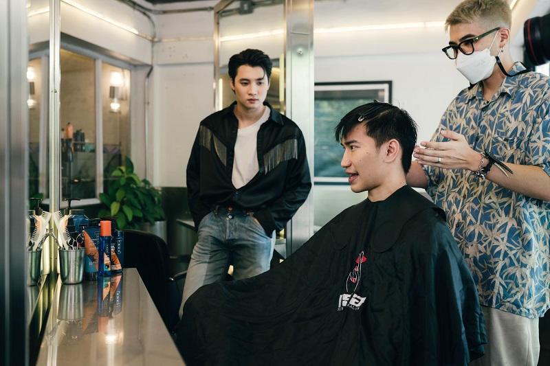 งานนี้ หนุ่ม มีน-พีรวิชญ์ไม่รอช้าจัดเตรียมลุคใหม่ให้ กันต์-ตะวันฉาย ด้วยการถอดนวมชั่วคราวมาเปลี่ยนลุคทรงผมเป็นแนวย้อนแฟชั่นยุค 90 สไตล์ Retro ส่วนเสื้อผ้าเป็นเสื้อหนัง กางเกงยีนส์ผสมผสานความเป็นร็อคเกอร์เท่ห์ ๆ จากนั้นทีมงานก็จัดการเปลี่ยนเสื้อผ้าตามคอนเซปต์ที่วางไว้ และถือเป็นครั้งแรกที่ “กันต์” ได้ลองแต่งตัวลุคนี้