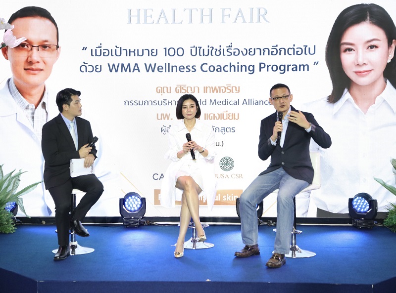 บริษัท เวิล์ด เมดิคัล อัลไลแอนซ์ (ประเทศไทย) จำกัด (World Medical Alliance หรือ WMA) ร่วม ด้วย บริษัท ณุศา ซีเอสอาร์ จำกัด และโรงพยาบาลพานาซี จัดงาน CANABLISS HEALTH FAIR ณ ห้าง Emquartier ระหว่างวันที่ 23-24 สิงหาคม 2565 ประกาศเปิดตัวโรงพยาบาลในรูปโฉมใหม่ Panacee Eternity พร้อมเปิดตัวหลักสูตร WMA WELLNESS COACHING PROGRAM หลักสูตรที่เปิดโลกด้านสุขภาพแห่งเวชศาสตร์ชะลอวัยเพี่อให้คุณและครอบครัวมีสุขภาพที่ดีตลอดอายุขัย พลิกโลกสุขภาพเพี่อคนไทยอีกครั้งกับการ เรียนรู้เพื่อป้องกันโรคร้ายก่อนสายเกินแก้ พุ่งเป้าย้ำแนวคิด “สุขภาพดีไม่มีขายถ้าอยากได้ต้องทำเอง” พร้อม ชูสโลแกน “เมื่อเป้าหมาย100ปี ไม่ใช่เรื่องยากอีกต่อไป” มั่นใจเป้าหมายในการใช้ชีวิตในปีที่100ให้มีคุณภาพชีวิตที่ดีที่สุด