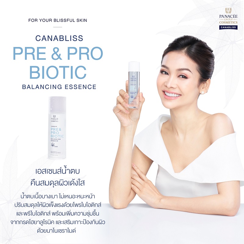 โดยคุณสมบัติของ Canabliss Essence เป็นสกินแคร์ที่มีเบสเป็นน้ำ อุดมด้วยส่วนผสมของสารออกฤทธิ์ที่เข้มข้น โดยหลักๆ ช่วยเพิ่มและกักเก็บความชุ่มชื้นได้ยาวนาน ผสานสารสกัด จาก CBD ที่ลดการอักเสบ รอยสิว ผิวด่างดำ ริ้วรอยทั่วหน้า และนวัตกรรม Snowbell จากเกาหลี ขาวใส และยังประกอบด้วย Amino Acids เพื่อเสริมเกราะปกป้องผิวให้แข็งแรง และปรับสุขภาพผิวโดยรวมให้สมดุล การเลือกใช้ เอสเซนส์ในขั้นตอนหลังการทำความสะอาดผิว ถือเป็นขั้นตอนสำคัญที่สุด เพื่อช่วยเตรียมผิวให้พร้อมรับการบำรุงจากผลิตภัณฑ์อื่นในขั้นตอนถัดไป โดยเมื่อผิวมีความชุ่มชื้นจะช่วยให้การดูดซึมส่วนผสมสำคัญในขั้นตอนการลงเซรั่มและมอยส์เจอไรเซอร์ที่ตามมามีประสิทธิภาพมากยิ่งขึ้น