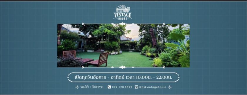 และวันนี้   เมื่อหลายคนถามหา เมื่อแฟนคลับสายชิมเรียกร้อง  Vintage House จึงกลับมาเปิดอีกครั้ง ในรูปแบบที่อบอุ่นกว่าเดิม  กับสไตล์  coffee & eatery  เคล้าเสียงดนตรีสดสุดชิล   ด้วยความตั้งใจเต็มเปี่ยมว่า อยากให้ลูกค้าที่มา  รู้สึกเหมือนมานั่งเล่นสนามหญ้าหน้าบ้านเพื่อน มาเมื่อไหร่ก็ได้ทานอาหารแสนอร่อยและอบอุ่นเป็นกันเอง
