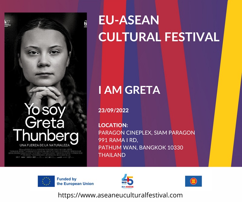 CINEMA การจัดแสดงภาพยนตร์ ซึ่งจะจัดขึ้นที่ประเทศกัมพูชาและประเทศไทย โดยประเทศไทยจัดแสดงภาพยนตร์ 2 เรื่อง ได้แก่ Barbarian Invasions ภาพยนตร์ประเทศมาเลเซีย ที่คว้ารางวัล Jury Grand Prix จาก Shanghai International Film Festival 2021 โดยการกำกับของ TAN Chui Mui สะท้อนเรื่องราวการต่อสู้ดิ้นรนของผู้หญิงคนหนึ่งในโลกที่ผู้ชายมีอิทธิพล ลงทะเบียนเข้าชมได้ที่ https://www.aseaneuculturalfestival.com/programme-2022/event-08/ และ I am Greta ภาพยนตร์สารคดีเรื่องแรกของผู้กำกับชาวสวีเดน Nathan Grossman ฉายเรื่องราวของ เกรตา ธุนเบิร์ก นักเคลื่อนไหวทางด้านสภาพภูมิอากาศคนรุ่นใหม่ที่มีชื่อเสียงระดับโลก โดยจะจัดฉายในรูปแบบออนไซต์ วันที่ 23 กันยายน 2565 ณ โรงภาพยนตร์ PARAGON CINEPLEX โรง 6 ศูนย์การค้า สยามพารากอน เวลา 16.30 น. เปิดเข้าชมฟรีไม่มีค่าใช้จ่าย ลงทะเบียนเข้าชมได้ที่ https://www.aseaneuculturalfestival.com/programme-2022/event-09/