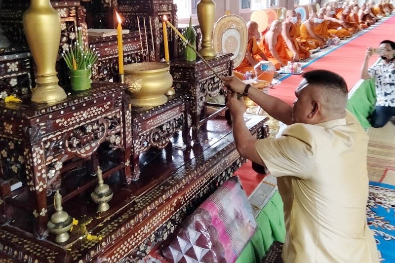 พล.ต.ต.ดร.ชยุต รองหัวหน้าพรรคเพื่อชาติ ตัวแทนพรรคฯ เป็นประธานฝ่ายฆราวาส งานประเพณี “ทำบุญทอดเทียนรวม” วัดบูรพาห้วยหลาว จ.มหาสารคาม