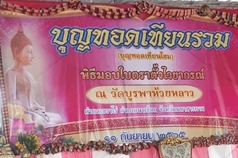 เมื่อวันที่ 11 ก.ย.65 เวลา 10.00 น. พล.ต.ต.ดร.ชยุต มารยาทตร์ รองหัวหน้าพรรคเพื่อชาติ ตัวแทนพรรคเพื่อชาติ เดินทางไปเป็นประธานฝ่ายฆราวาส ในงานประเพณี “ทำบุญทอดเทียนรวม”ศาลาการเปรียญวัดบูรพาห้วยหลาว ม.7 ต.เขวาไร่  อ.นาเขือก จ.มหาสารคาม
