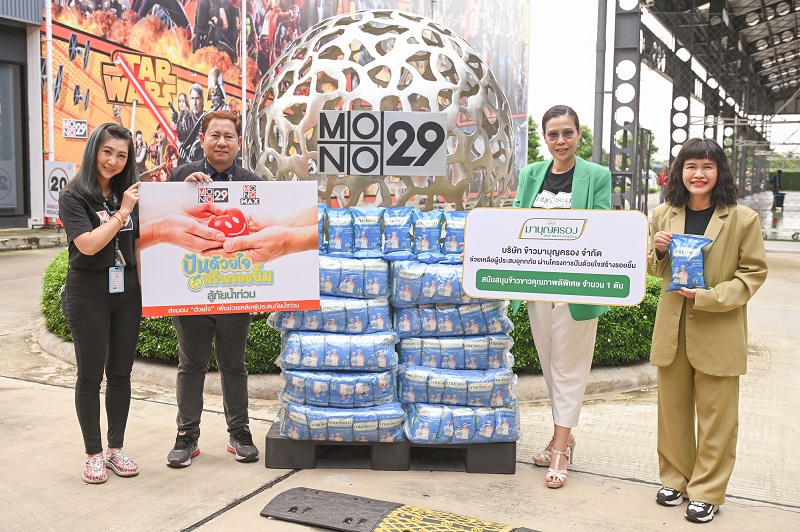 กิตติพัฒน์ เดชมณี ผู้ช่วยผู้อำนวยการสถานีโทรทัศน์ ช่อง MONO29 รับมอบเครื่องอุปโภคบริโภคจาก มัลลิกา บุระขันธ์ ผู้อำนวยการฝ่ายบริหารการตลาด บริษัท ข้าวมาบุญครอง จำกัด ที่ให้เกียรติเดินทางมามอบข้าวขาวตรามาบุญครอง จำนวน 1 ตัน เพื่อร่วมสมทบสิ่งของในโครงการ “ปันด้วยใจ สร้างรอยยิ้ม สู้ภัยน้ำท่วม” เนื่องด้วยความห่วงใยจากสถานการณ์น้ำท่วมในหลายจังหวัด ที่ส่งผลกระทบต่อชีวิตความเป็นอยู่ของประชาชนจำนวนมาก ช่อง MONO29จะนำสิ่งของที่ได้รับจากพันธมิตรไปแจกให้กับผู้ประสบอุทกภัยในพื้นที่ต่าง ๆ ต่อไป ซึ่งรับมอบของบริจาคช่วยน้ำท่วม ณ MONO29 Studio ถ.ชัยพฤกษ์ จ.นนทบุรี